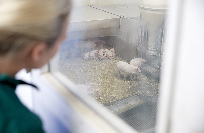 - Hvis der er vinduer fra gangen til sektionen, så kig da ind og se om grisene ligger rigtigt, inden du åbner døren